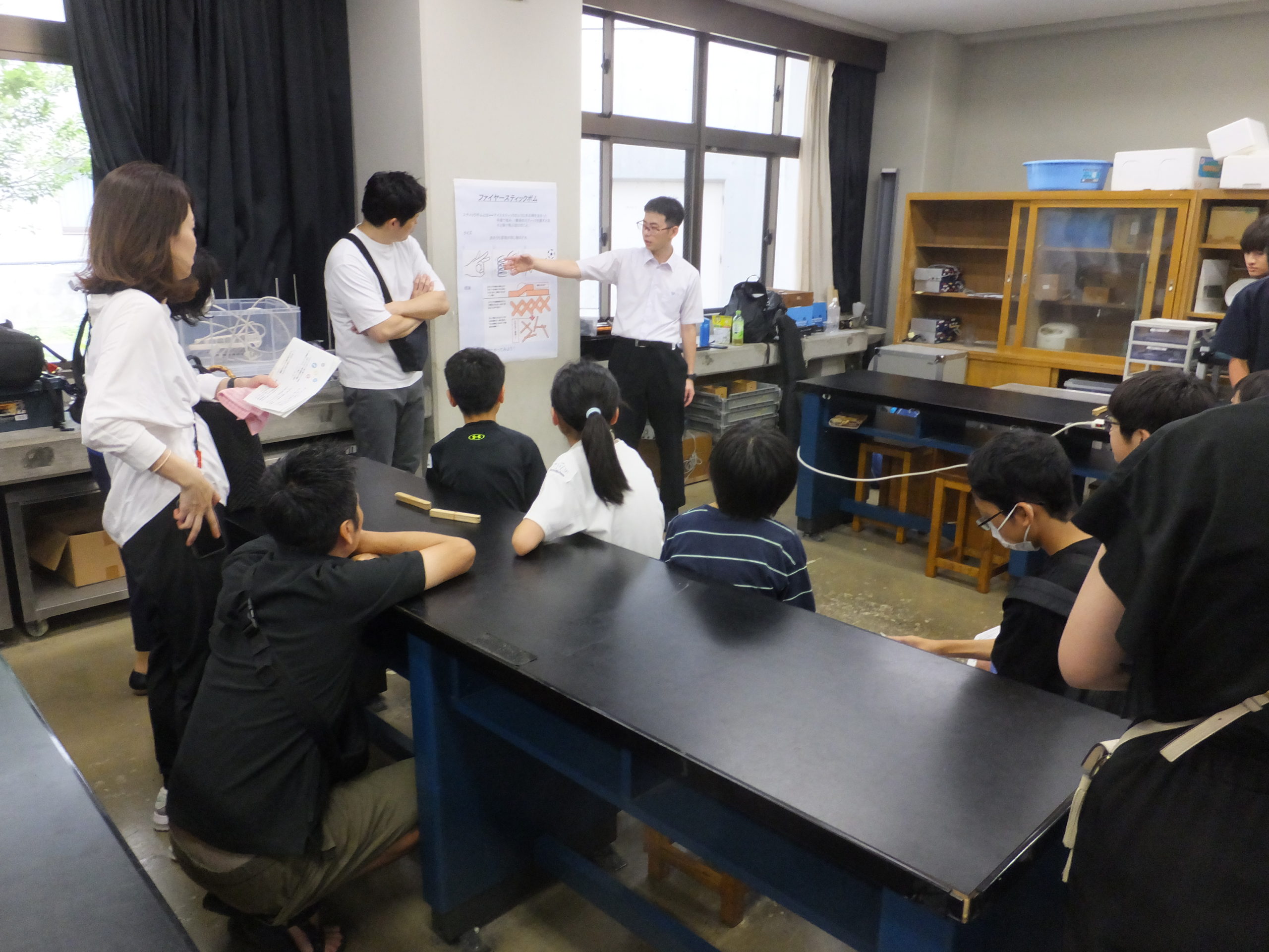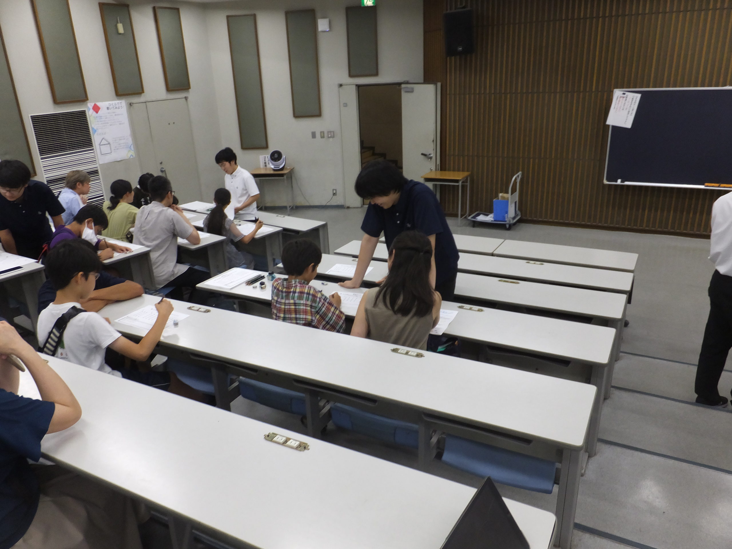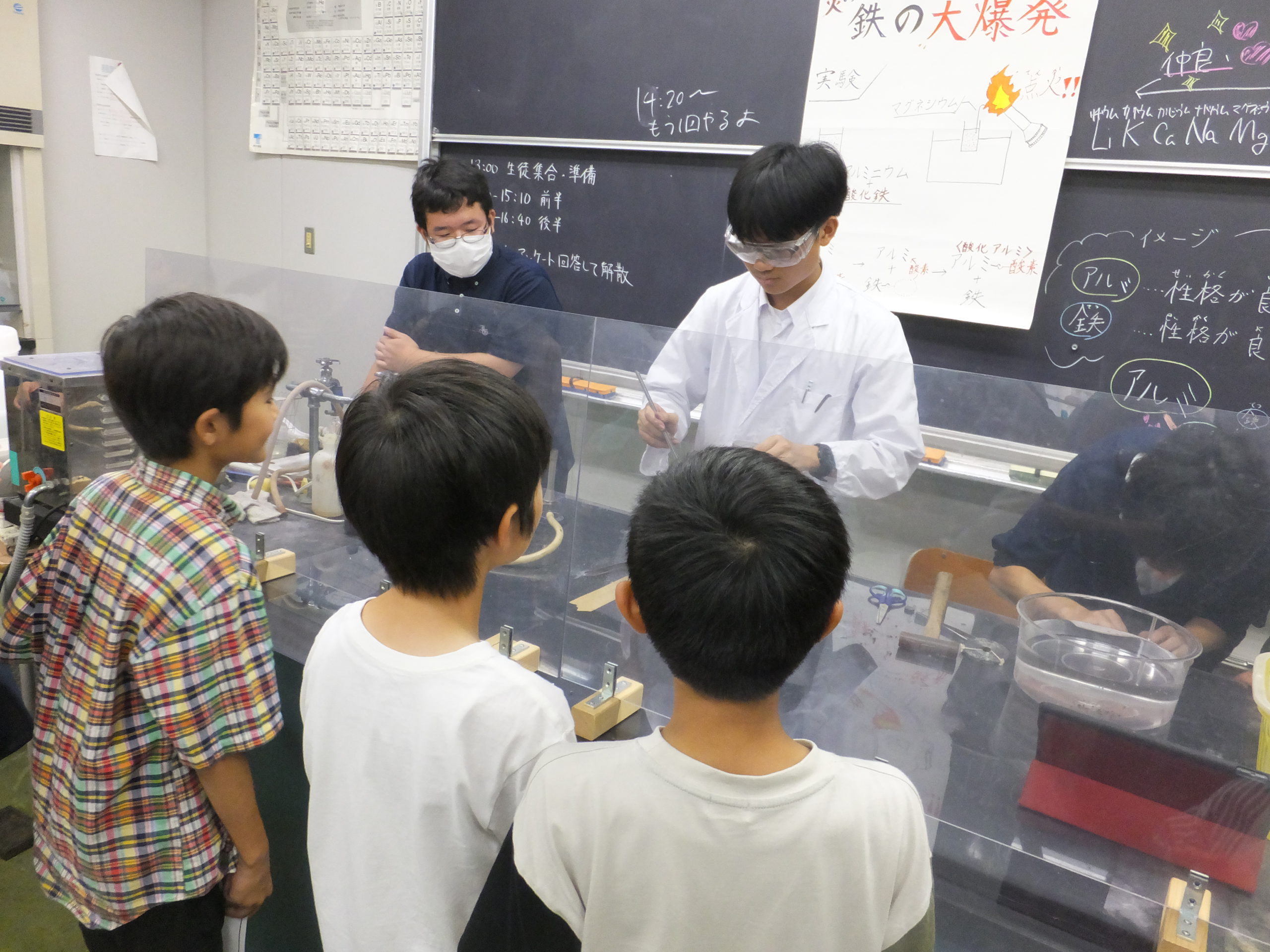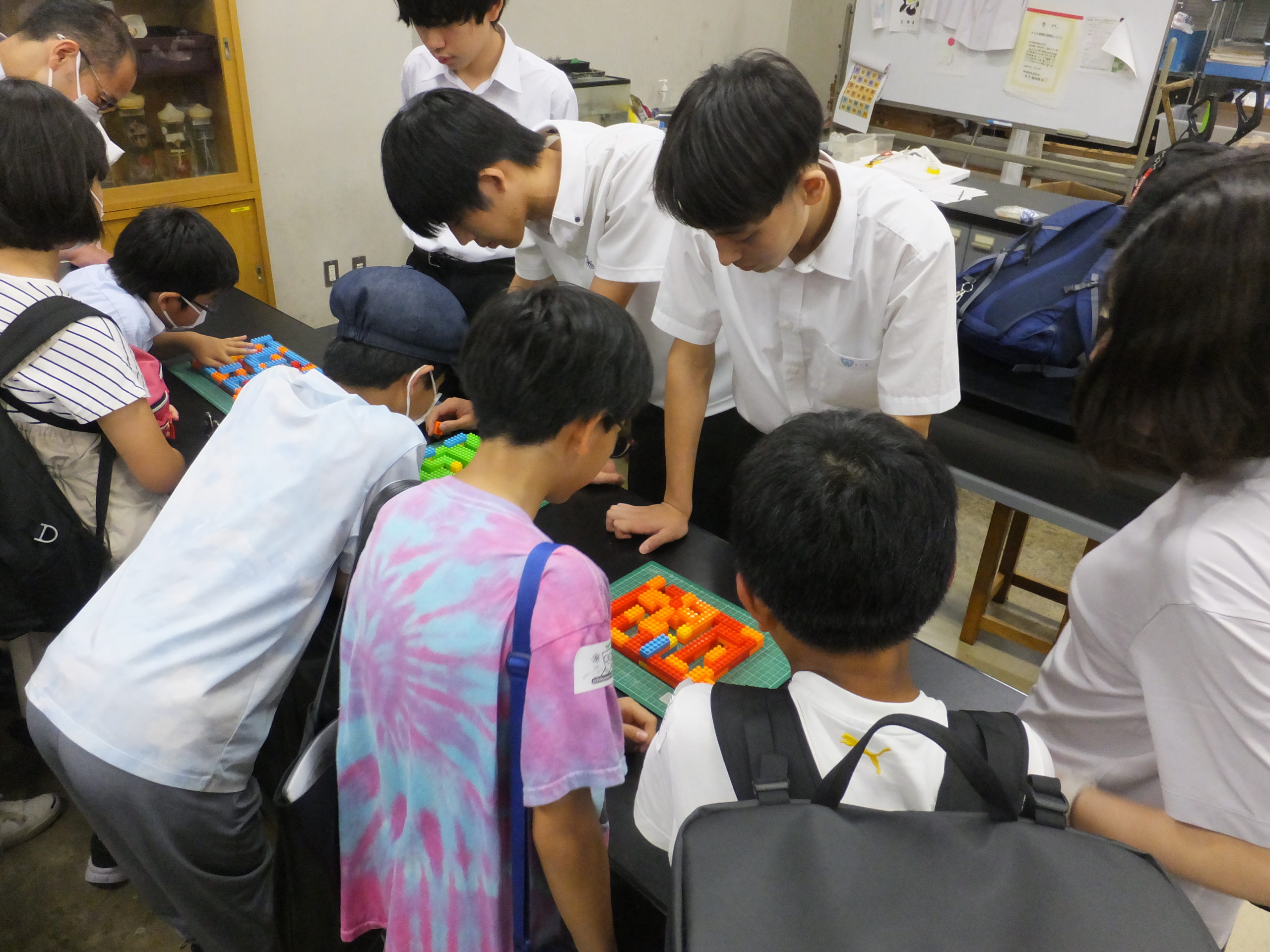 7月20日(土)に200名の小学生を招き、理数の楽しさを知ってもらう講座を開きました。講師役を務めるのは本校高2の生徒です。17の講座を用意し、実験をしたり、パズルを解いたり、小学生たちは思い思いに実験室を回りながら、理数の世界に浸っていました。