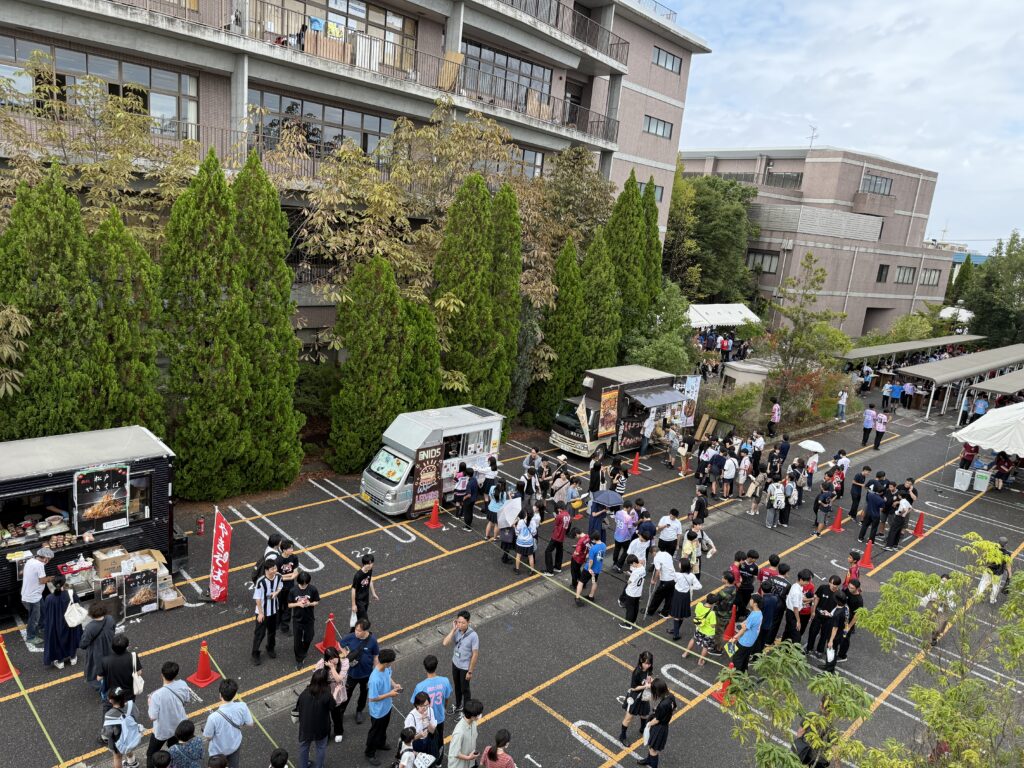 2日間で14211人の方がご来場いただき、生徒にとって印象に残る文化祭でした。キッチンカーは昨年の倍の8台を設置。新たに後援会が本館3階に初めて広場をつくり、学園生活について質問を受け対話し、後援会活動展示も行うなど新しい試みでした。なずな祭も、毎年進化し新しい試みを重ねています。