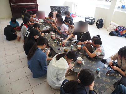 タイ研修は「Stand Up for the Better Future(より良い未来・世界のために自分ができることを見つけよう)」をテーマに、こちらも子供や少数民族の方々の暮らしに寄与するNGOとの協働活動やアート体験を通じて、社会を変える取り組みに向き合いました。どちらの研修も日本の国内校との合同研修で、ここでも新しい出会いが生まれ互いに刺激を与えあったようです。